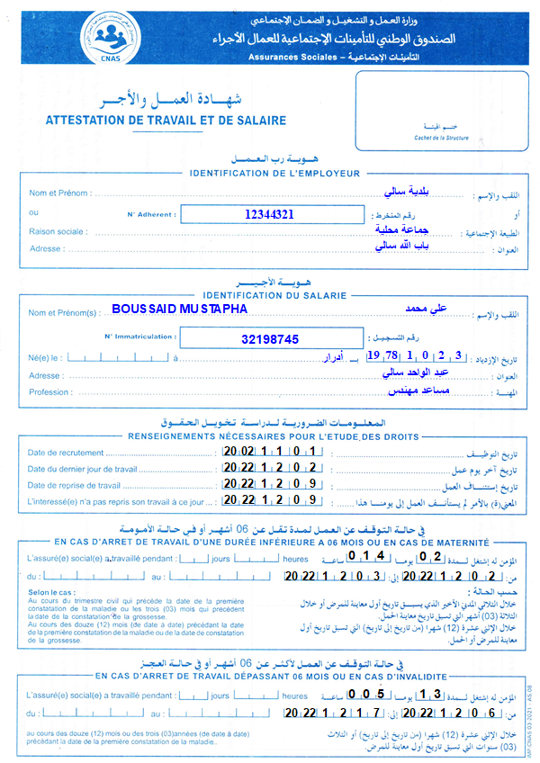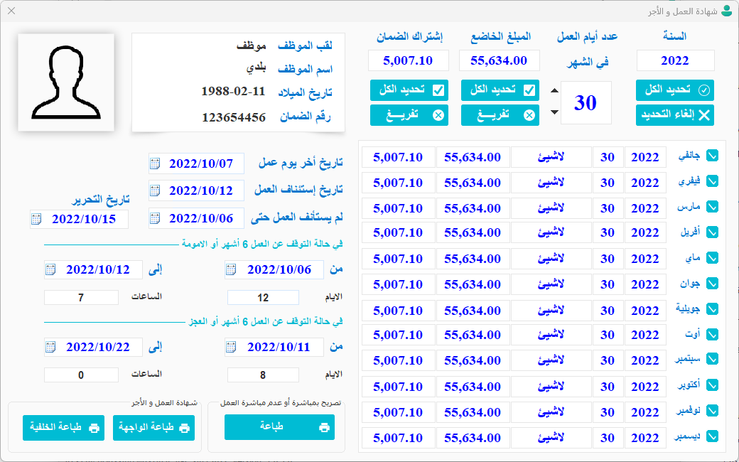 برنامج لإدارة و طباعة شهادة العمل و الأجر AS8