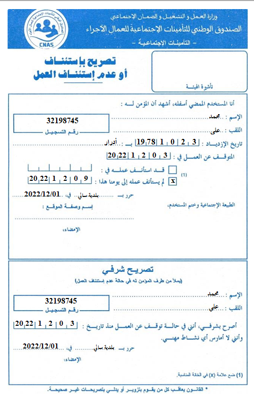 الخاصة بالتصريح لدى الضمان الاجتماعي